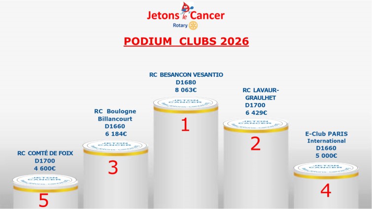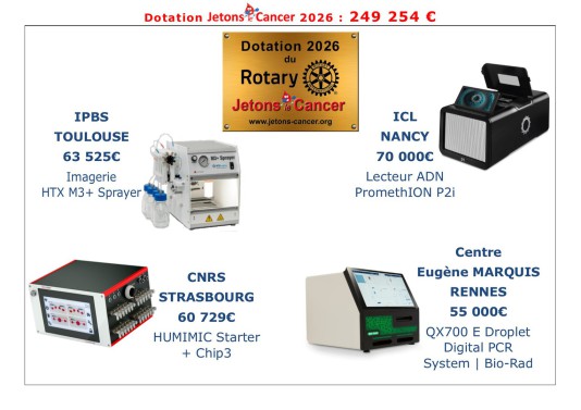 << L'opération "Jetons Cancer"... est un exemple incroyable de solidarité rotarienne. Voir des hommes et des femmes de notre région se mobiliser et arriver à un tel résultat, nous donne encore plus de détermination à faire accélérer la recherche pour que les patients bénéficient demain de thérapies innovantes, particulièrement pour les maladies du cancer.