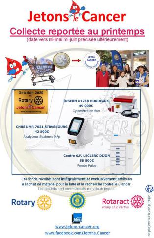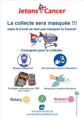 Personne ne peut prédire où en sera la pandémie en février 2021. Nous respecterons bien entendu les consignes des autorités, et si la situation l’exige nous annulerons la collecte. La seule conséquence financière serait l’acquisition des kits de Jetons (50 € pour 500 jetons) qui resterait à la charge du club… mais qui seront réutilisables pour une autre collecte.